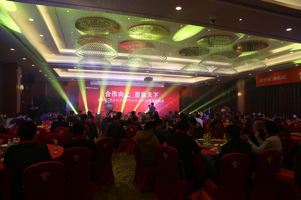 1月17日下午,“合作向上 質(zhì)贏天下”榮事達凈水機2016年供應(yīng)商大會暨答謝晚宴在合肥北城世紀金源大酒店隆重舉行,來自全國的近百位供應(yīng)商企業(yè)代表應(yīng)邀出席。榮事達水工業(yè)公司董事長雷鳴、總經(jīng)理支新郁、生產(chǎn)制造中心總經(jīng)理孫曉峰、凈水家電事業(yè)部總經(jīng)理王悅生、工程事業(yè)部總經(jīng)理劉東及公司其他事業(yè)部負責(zé)人參加了會議。
