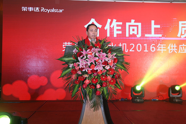 隨后,公司技術(shù)部部長江正山從技術(shù)層面出發(fā),希望合作企業(yè)嚴把質(zhì)量關(guān),為榮事達生產(chǎn)優(yōu)質(zhì)產(chǎn)品提供源頭保證。生產(chǎn)制造中心總經(jīng)理孫曉峰介紹了2015年與供應(yīng)商在產(chǎn)品質(zhì)量、生產(chǎn)技術(shù)等合作中取得的進步,并針對公司產(chǎn)品更新?lián)Q代對零部件供應(yīng)提出新的更高要求。孫總與在座的供應(yīng)商朋友分享了榮事達的“新和商”精神,帶領(lǐng)大家進行了莊嚴的宣誓,共同表達了“合作向上、質(zhì)贏天下”的決心和干勁。凈水家電事業(yè)部總經(jīng)理王悅生闡述了2015年榮事達凈水機在終端市場的銷售盛況,希望在廣大供應(yīng)商的配合下,實現(xiàn)優(yōu)質(zhì)產(chǎn)品和強勢營銷的完美結(jié)合,給廣大消費者提供更優(yōu)質(zhì)、更周到的凈水體驗。